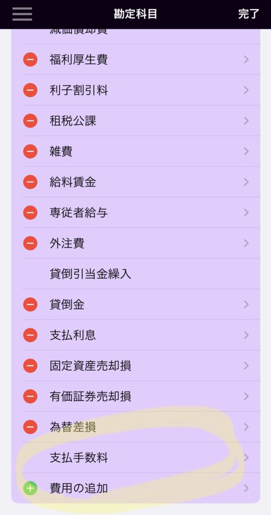 支払手数料という勘定科目が欲しいので、自分で追加しました。
