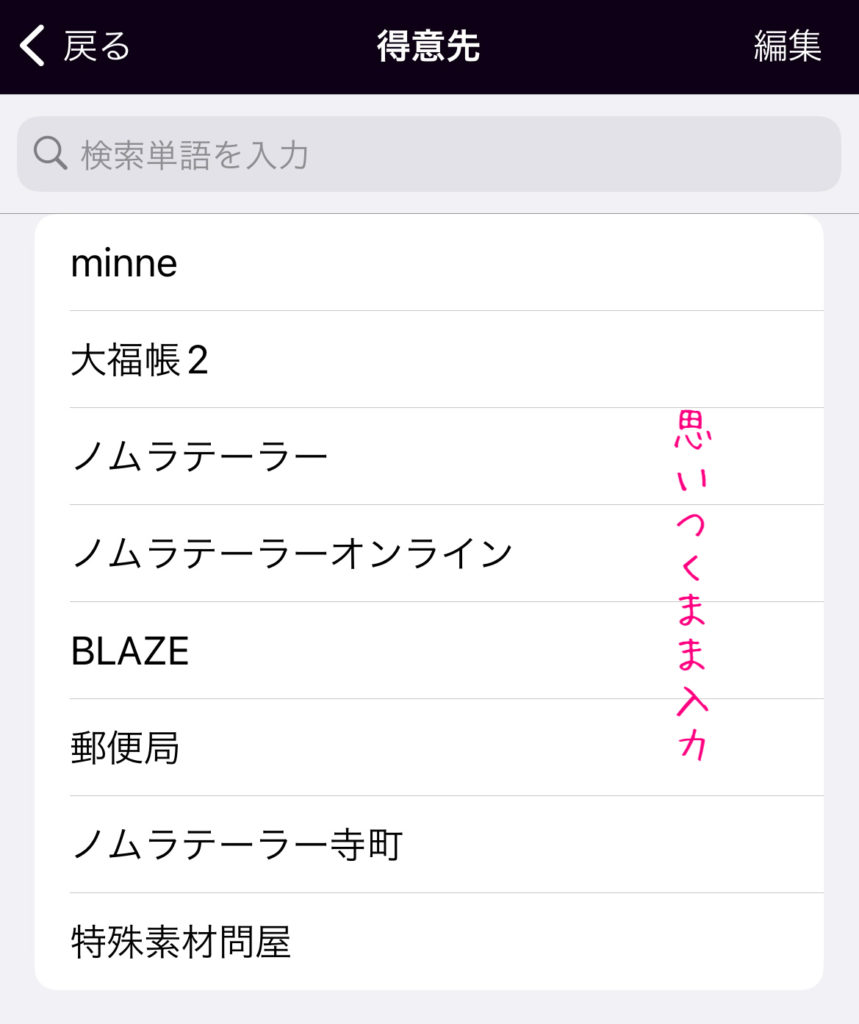 課金の手続きが終わったら、仕入によく登場するお店の名前をいくつか登録しました。
