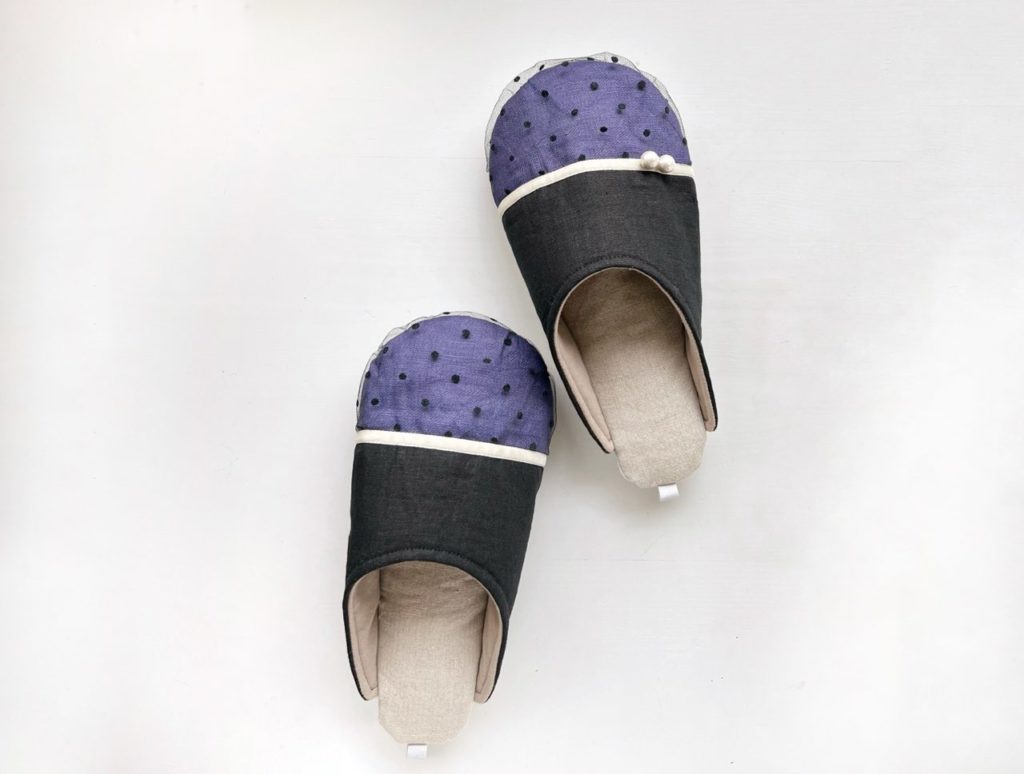 リネンスリッパ パープル×ブラック×ドットチュール
