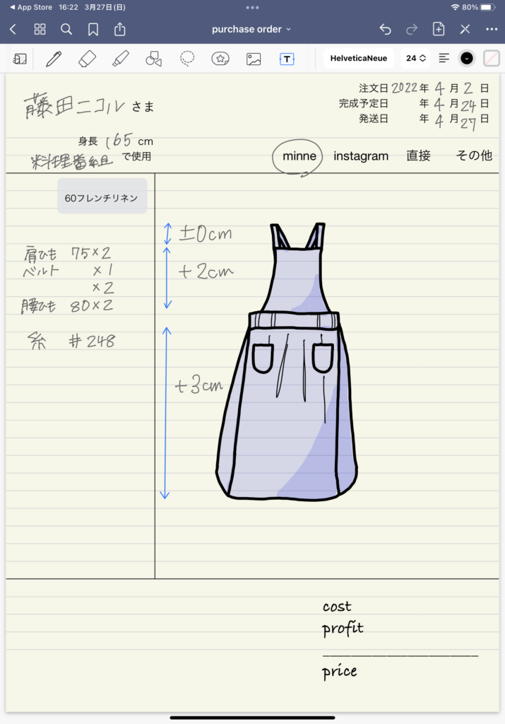 またiPad用アプリ、GOOD Notes5でのオーダーシート作成にも挑戦しました。