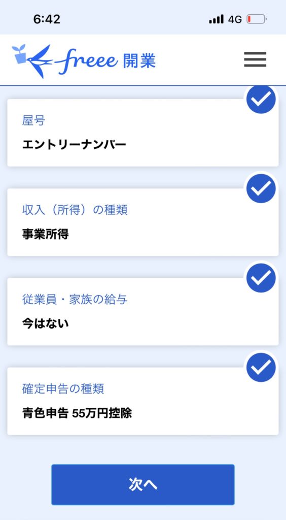 質問項目を埋めると右側に✔︎がついて、簡単に手続きを進めることができます。