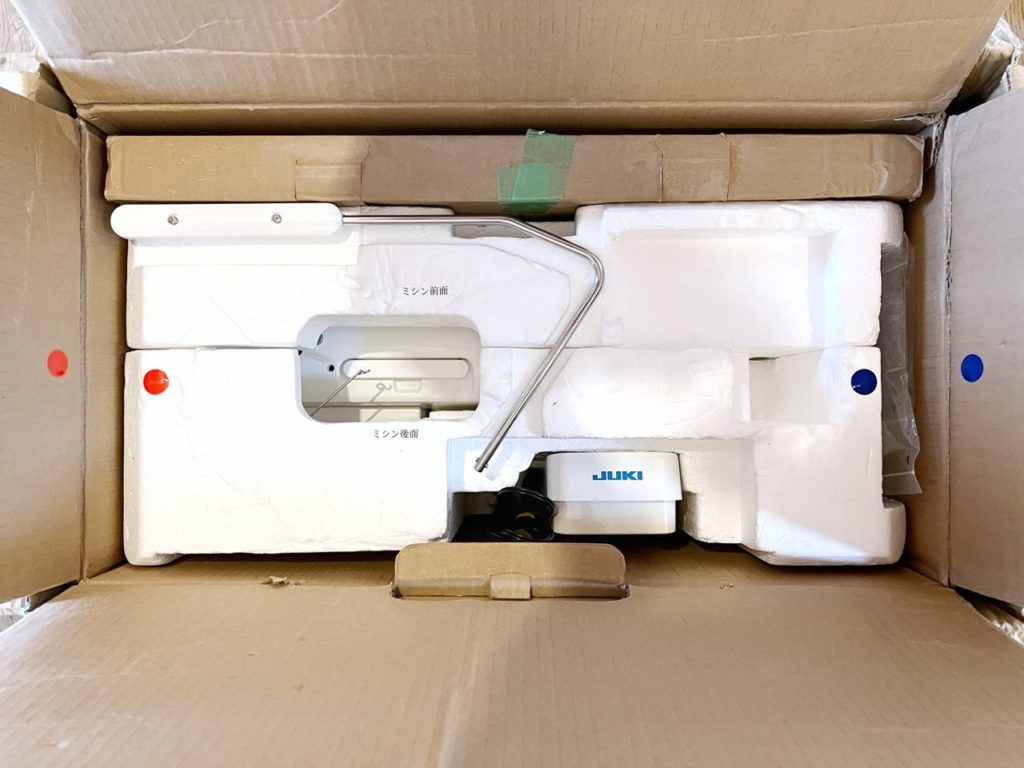 ミシンの梱包はすきまが埋まっており、箱から取り出しにくくなっています。