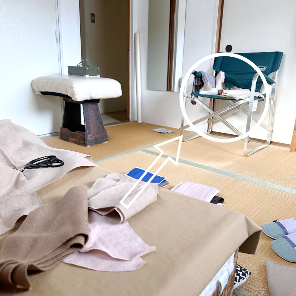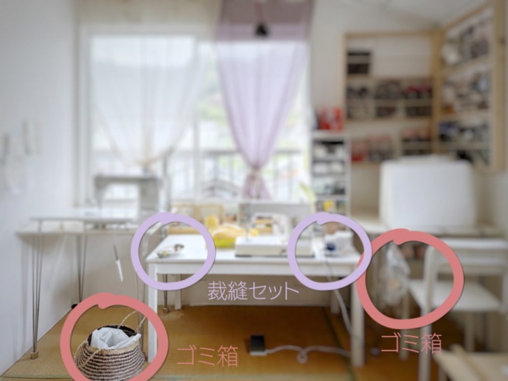 裁縫セット・ゴミ箱は、ミシンのすぐそばに置きます。