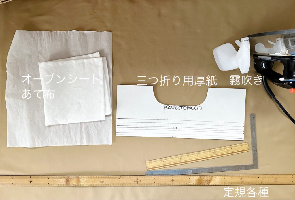 三つ折りする時、厚紙に引いたラインに沿ってアイロンする