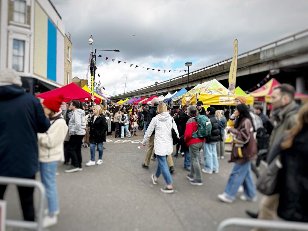 こちらはノッティングヒルのポートベローマーケットのフードエリアです。こういう露店通りが何本もあり、たくさんの人で賑わっていました。