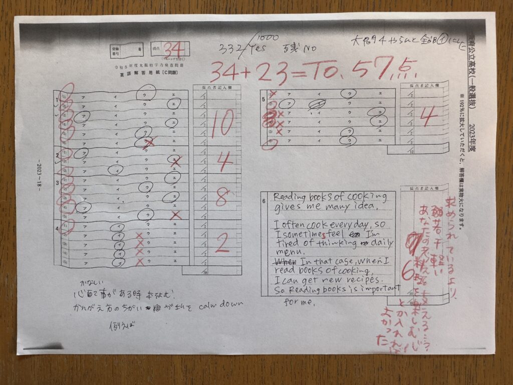 筆者は大問を2つ終えたところで、いったん最後の英作文へ飛びました。これはスムーズに解けました。英語で自分の意見を伝えるのはデュオリンゴのロールプレイで何度も経験しています。