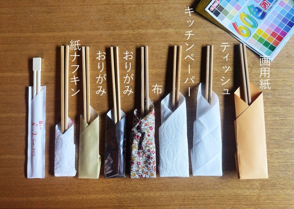 筆者はお箸箱を洗う手間を省くため、簡易の箸袋(手作り)にお箸を収納しています。