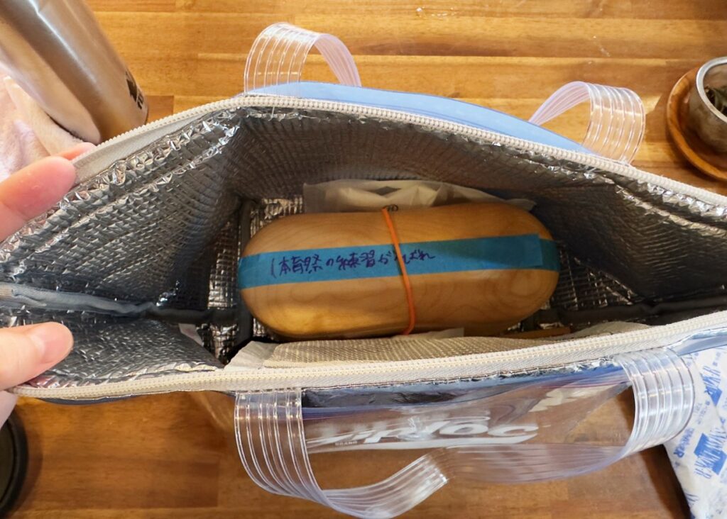 ごはんが冷めたら、蓋をしてランチバッグに入れます。この時、マスキングテープを弁当箱に貼って、親心メッセージを添えてはどうでしょう?