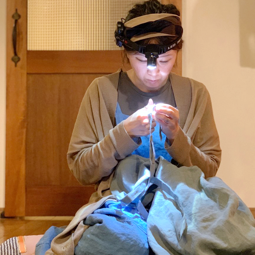 寝ぼけ頭を起こすのに、外での手縫も気持ちいい。