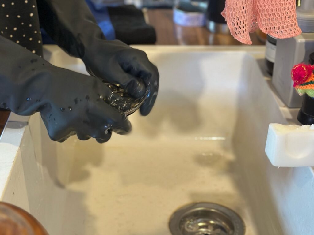 洗剤を垂らして、シンクを軽く洗っておきます。