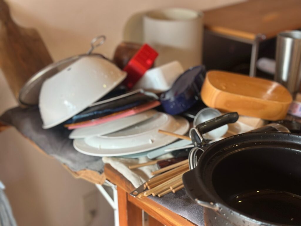そんな筆者は、キッチンカウンターに半畳ほど食器を広げて一晩置いてます。